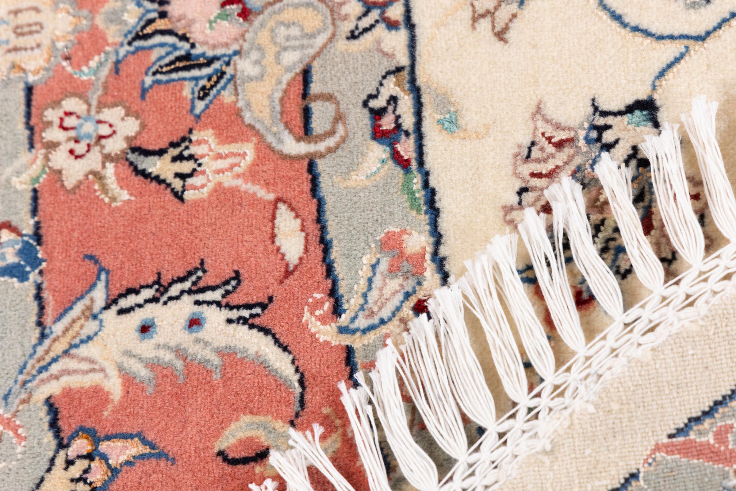 This rug has been crafted in oldest craftmanship to a piece of sophisticated quality. 50Raj rugs possess a fine level of knot density. This Tabriz has been crafted from soft sheep wool in combination with natural dyes. It belongs to rugs with an extremely good reputation among other Persian rugs.