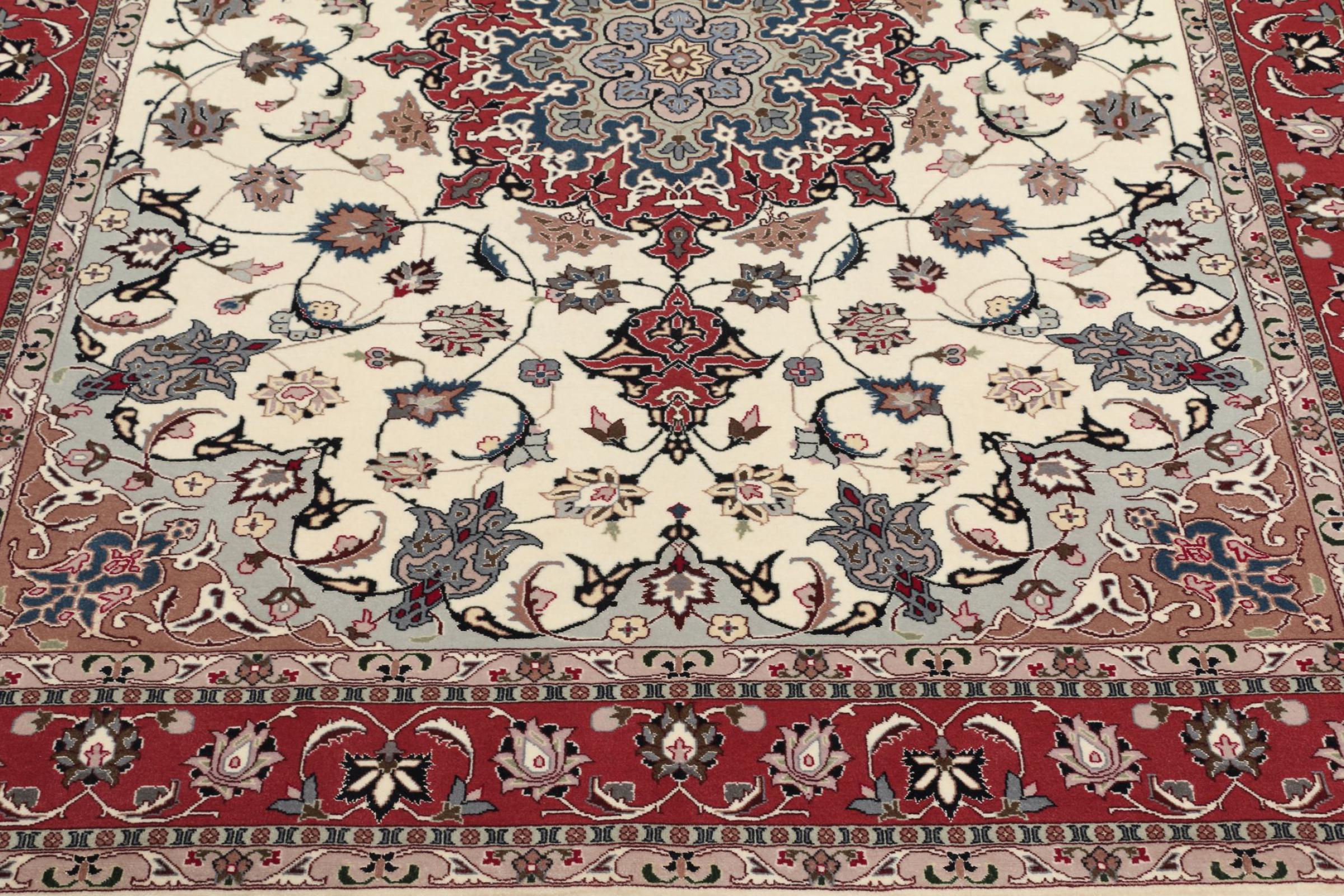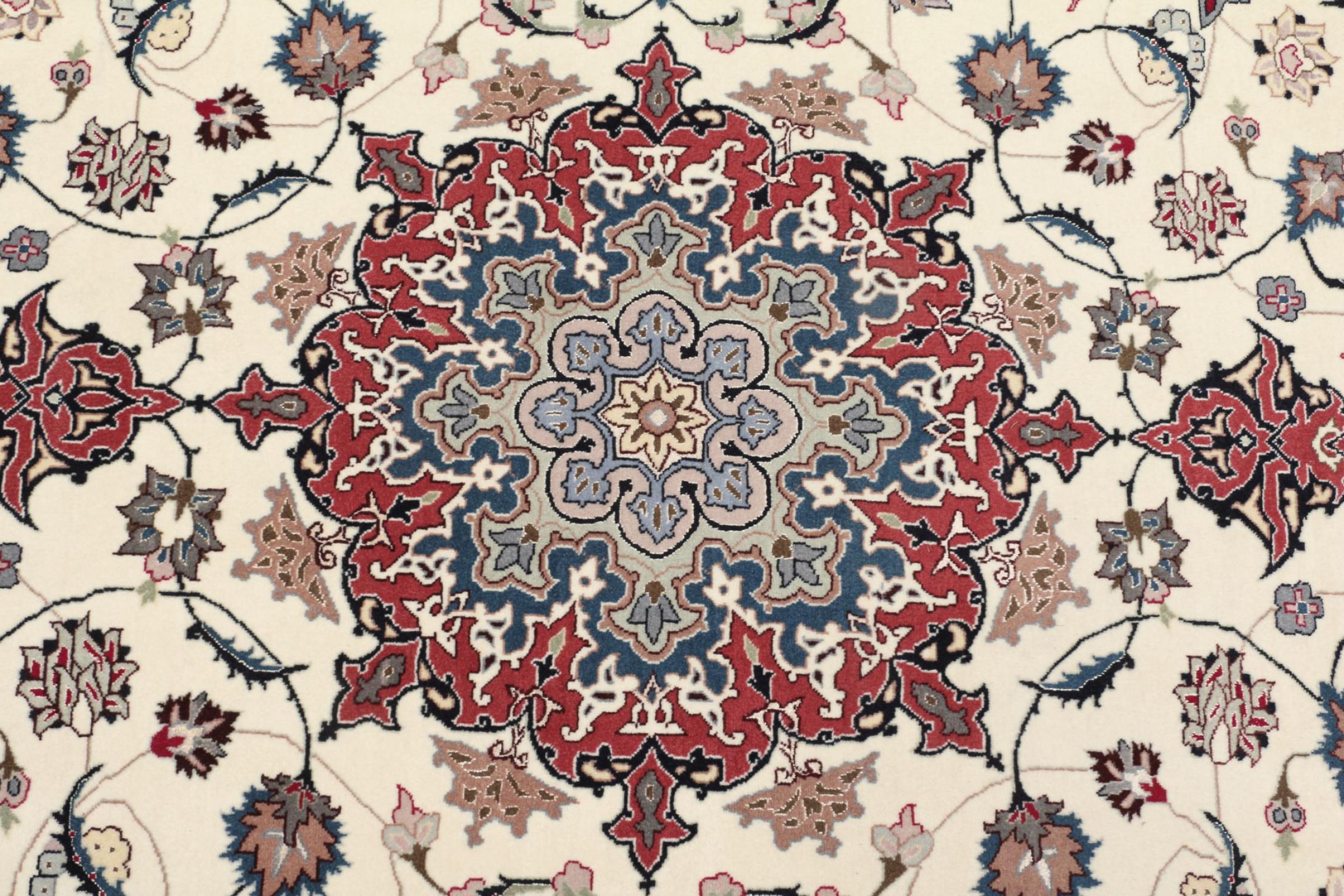 Rug ID: 308790004629039 Size: 6'7"x5'0" ft Thickness: ap. 0.28 in Knot density: 284 - 316 / square inch Manufacturing: Knotted by hand Pile: Wool with silk Warp: Cotton Origin: Persia / Iran Age: New Weight: ap. 20 lb Also know as Tabriz, Tabris, Täbris, Tebriz, Tebris, 40Raj, 50Raj In stock: Unique - Only 1 in stock