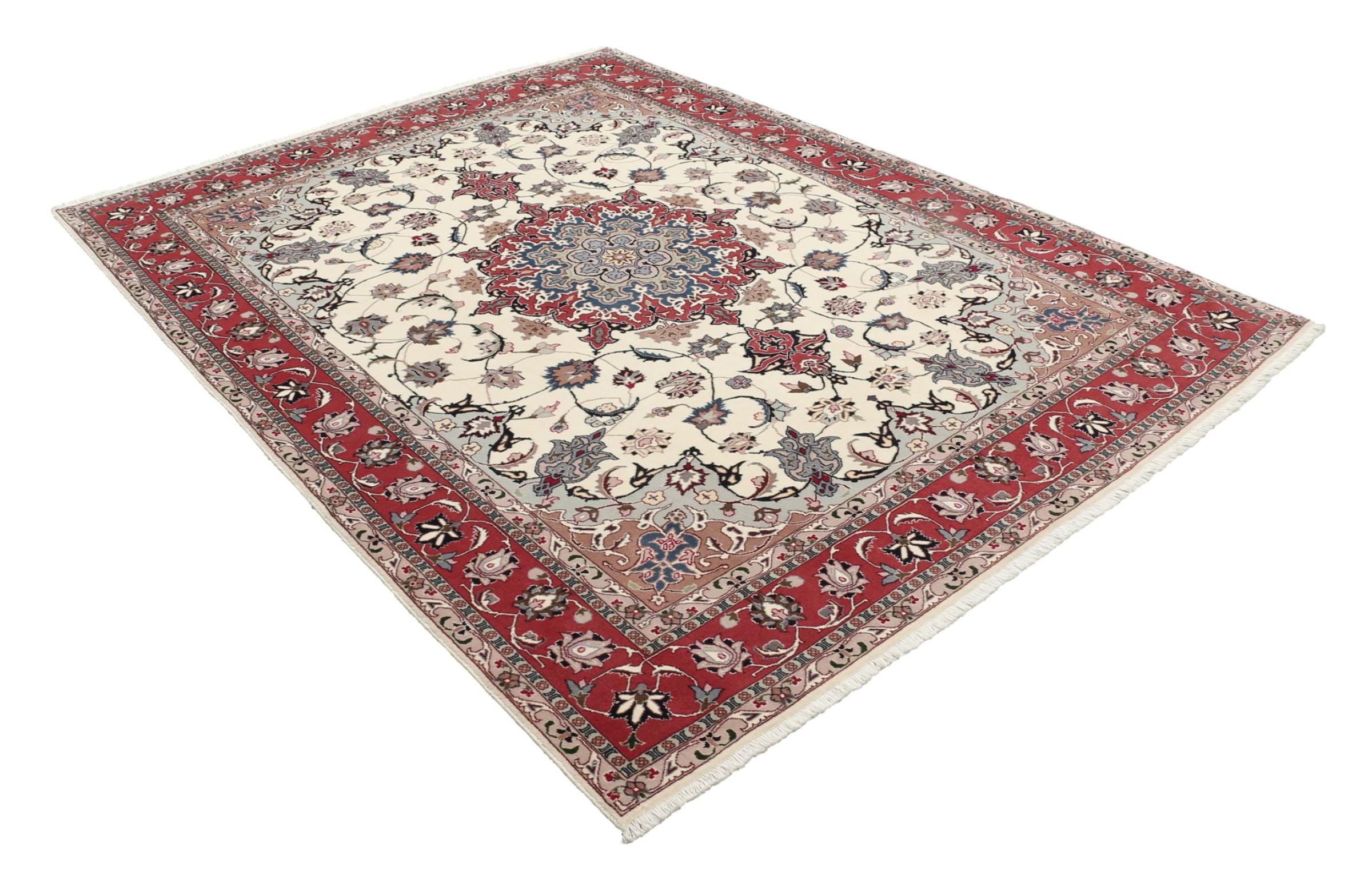 This rug has been crafted in oldest craftmanship to a piece of sophisticated quality. 50Raj rugs possess a fine level of knot density. This Tabriz has been crafted from soft sheep wool in combination with natural dyes. It belongs to rugs with an extremely good reputation among other Persian rugs.