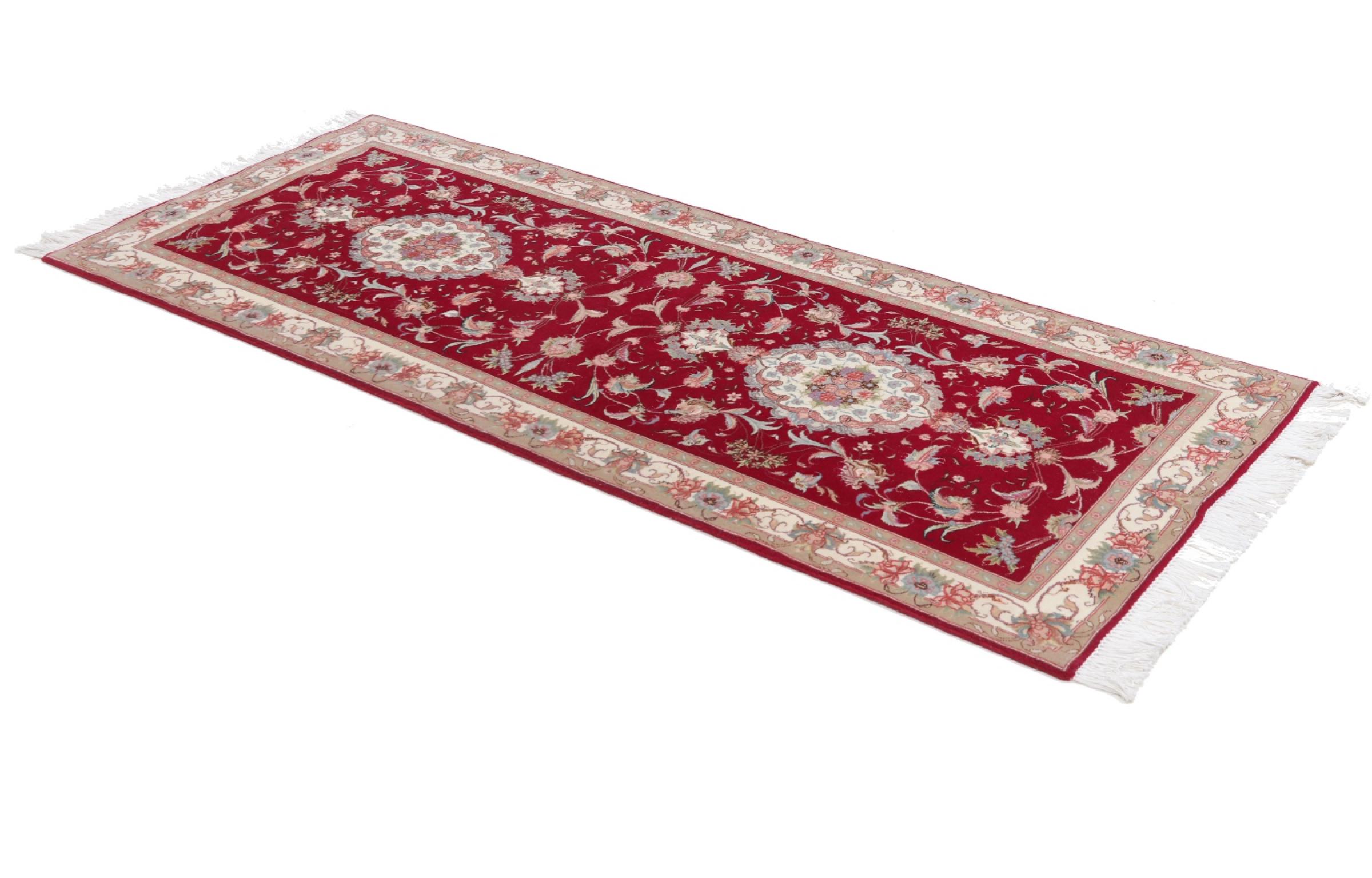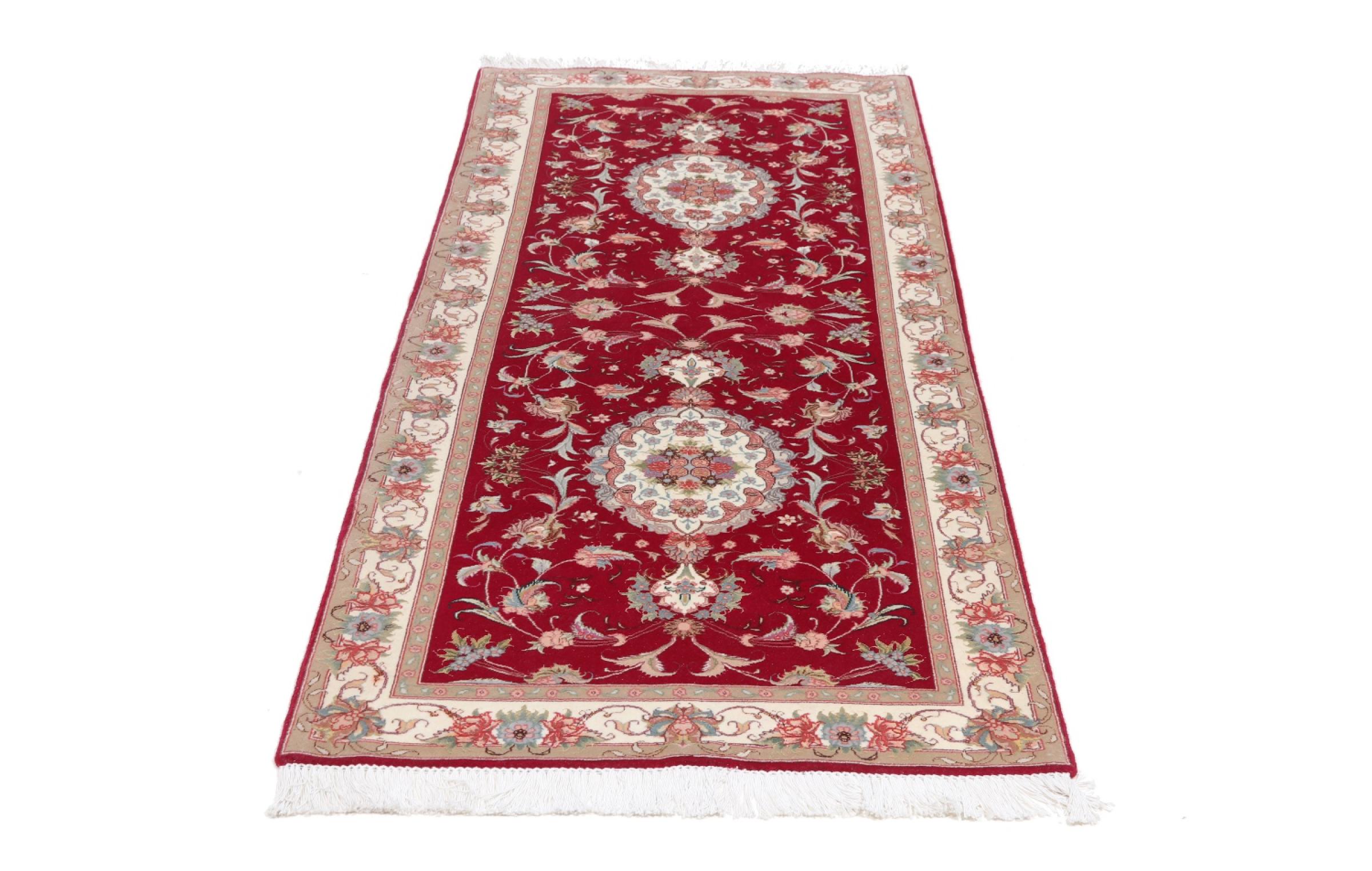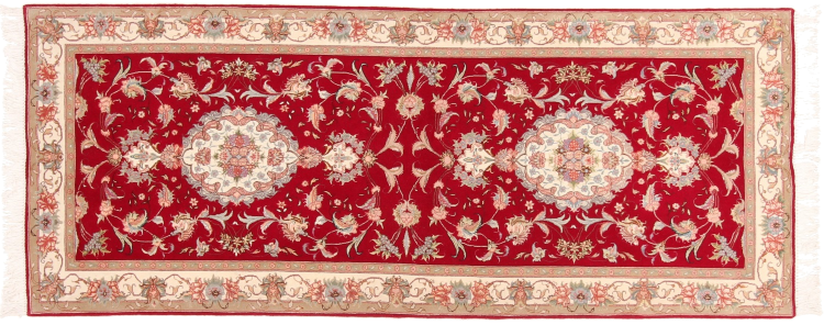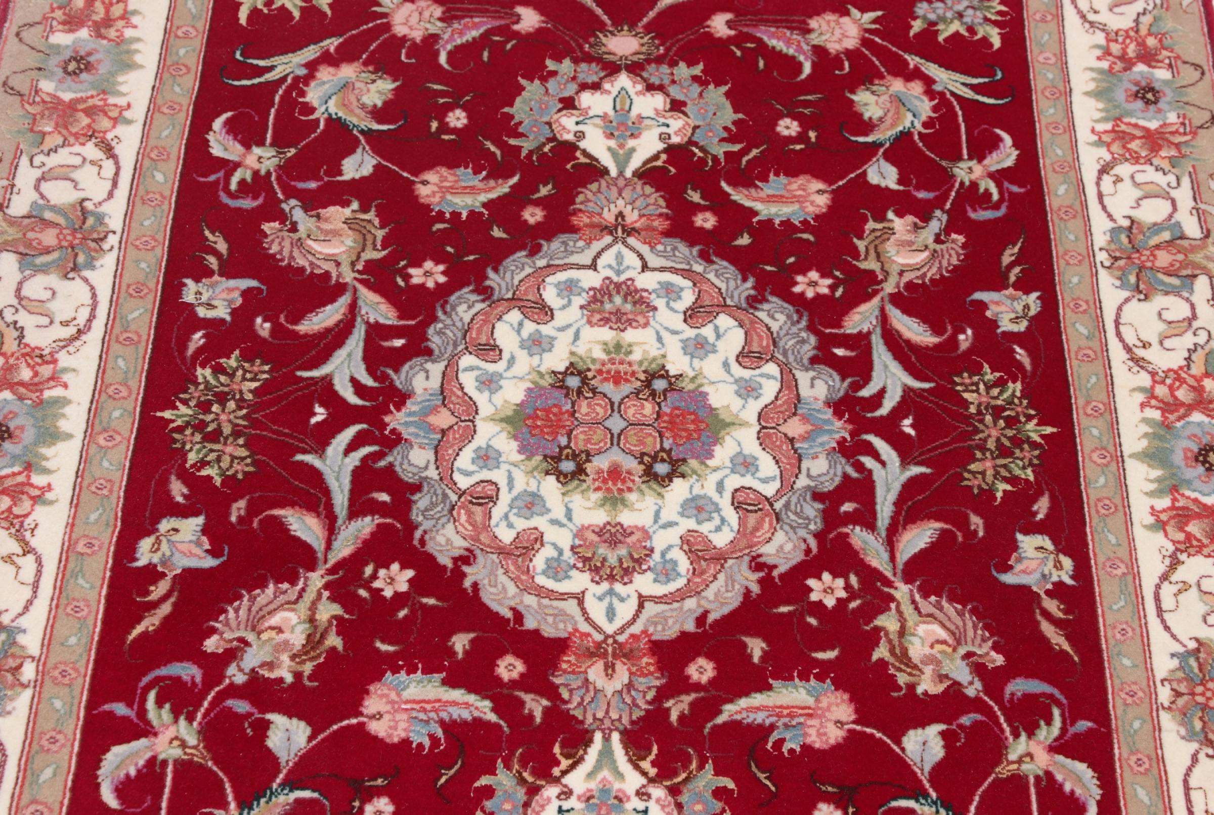 Rug ID: 3081100126929 Size: 7'2"x3'0" ft Thickness: ap. 0.28 in Knot density: 291 - 323 / square inch Manufacturing: Knotted by hand Pile: Wool with silk Warp: Cotton Origin: Persia / Iran Age: New Weight: ap. 13 lb Also know as Tabriz, Tabris, Täbris, Tebriz, Tebris, 40Raj, 50Raj In stock: Unique - Only 1 in stock