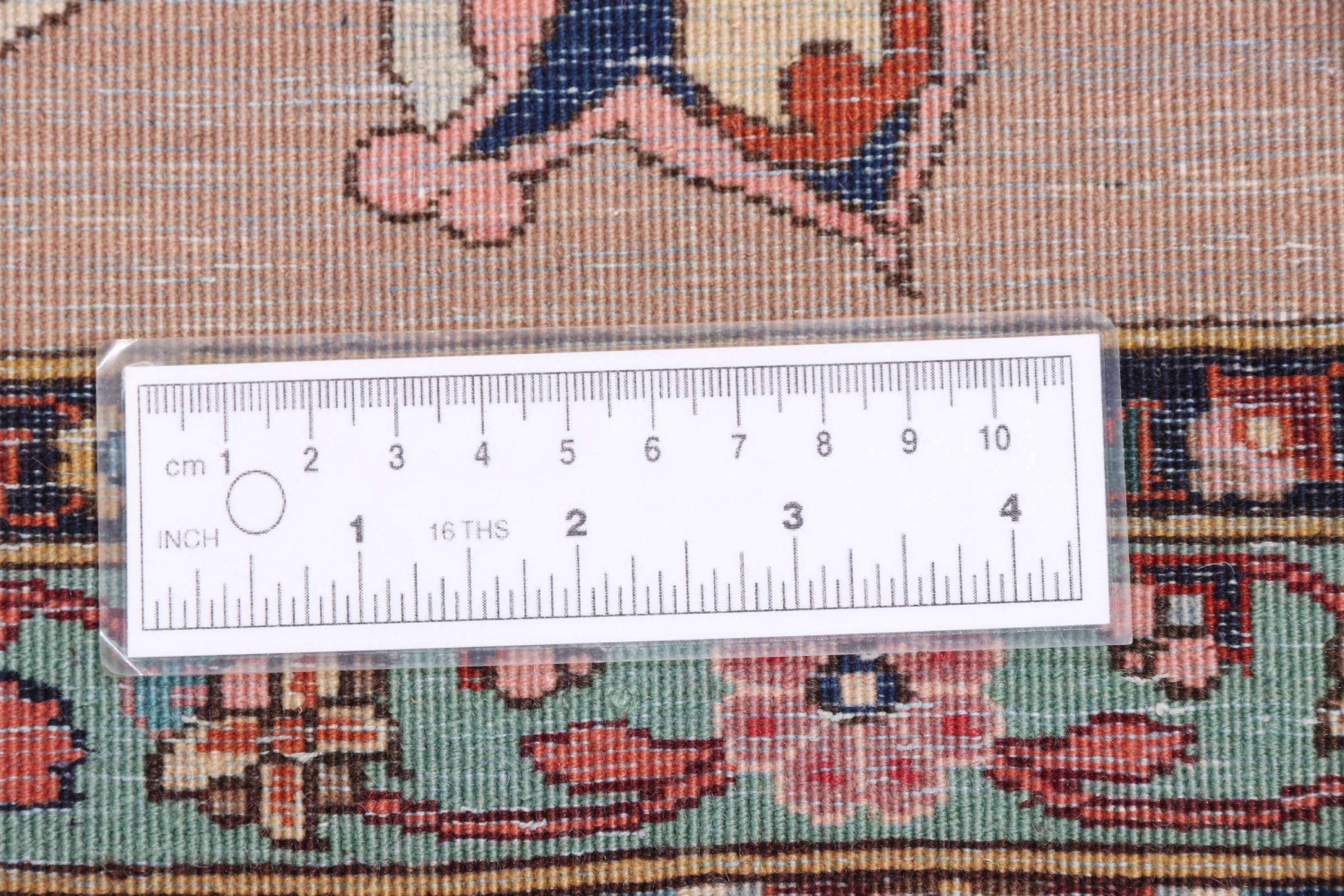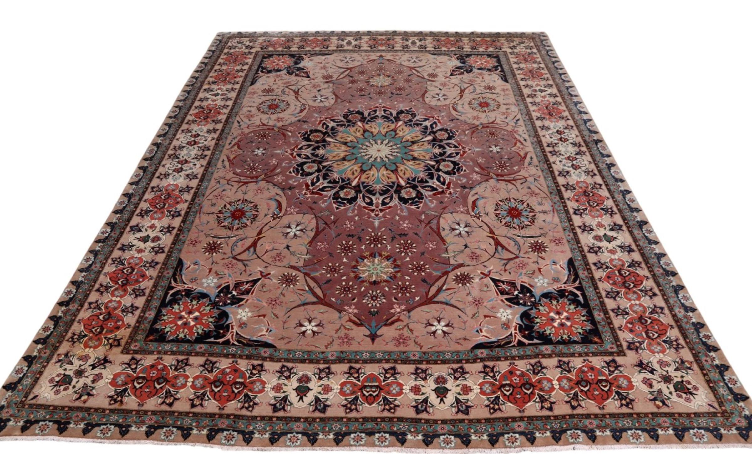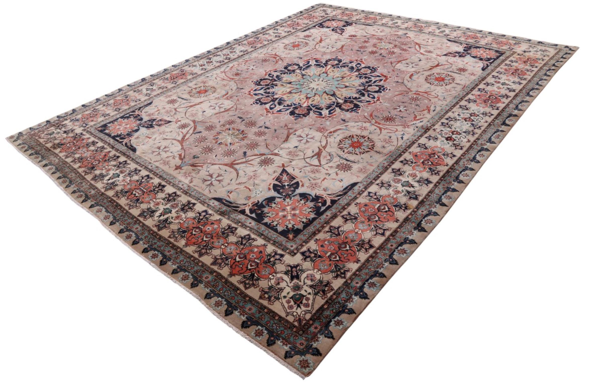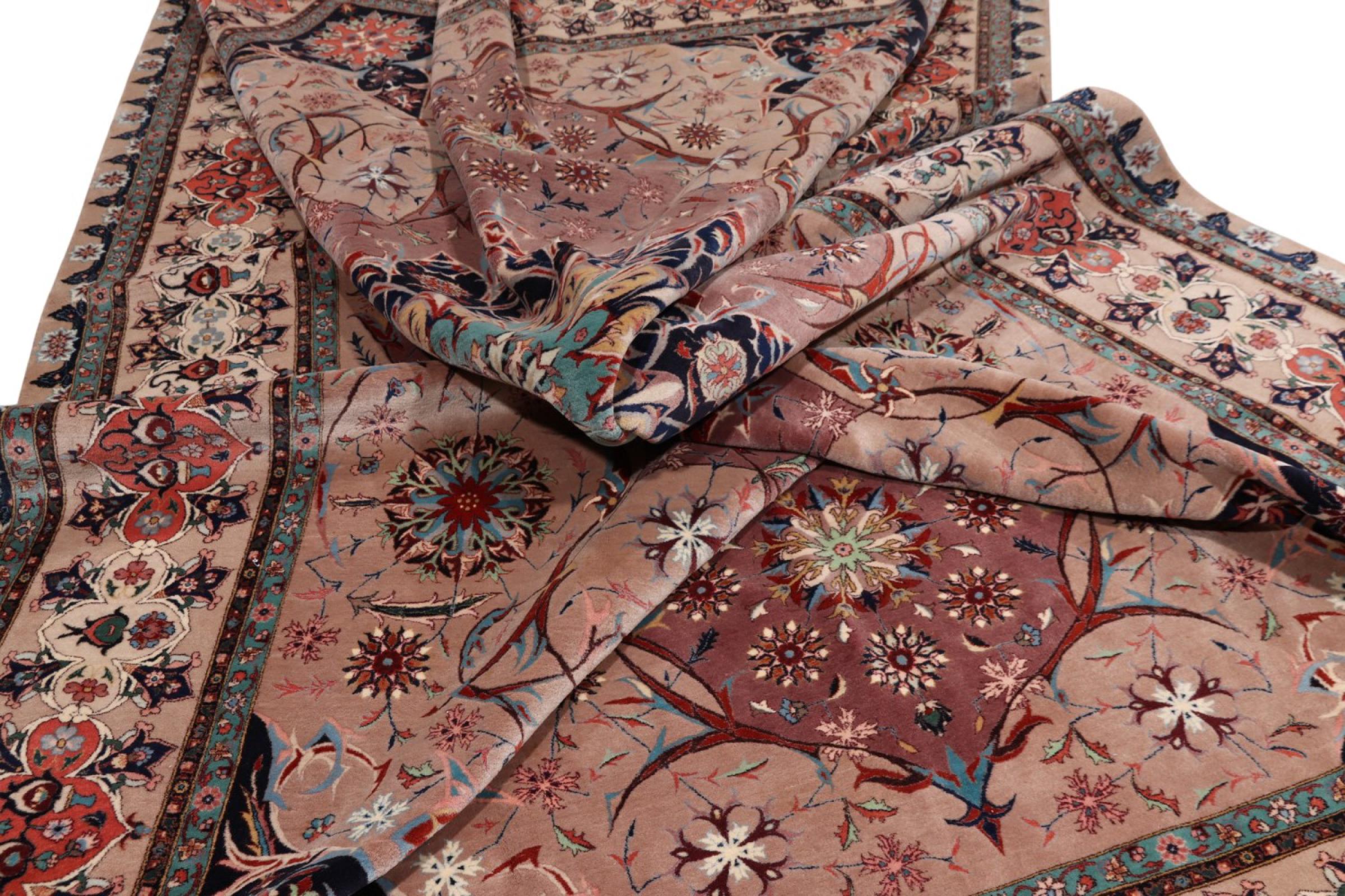 This rug has been crafted in oldest craftmanship to a piece of sophisticated quality. 50Raj rugs possess a fine level of knot density. This Tabriz has been crafted from soft sheep wool in combination with natural dyes. It belongs to rugs with an extremely good reputation among other Persian rugs.