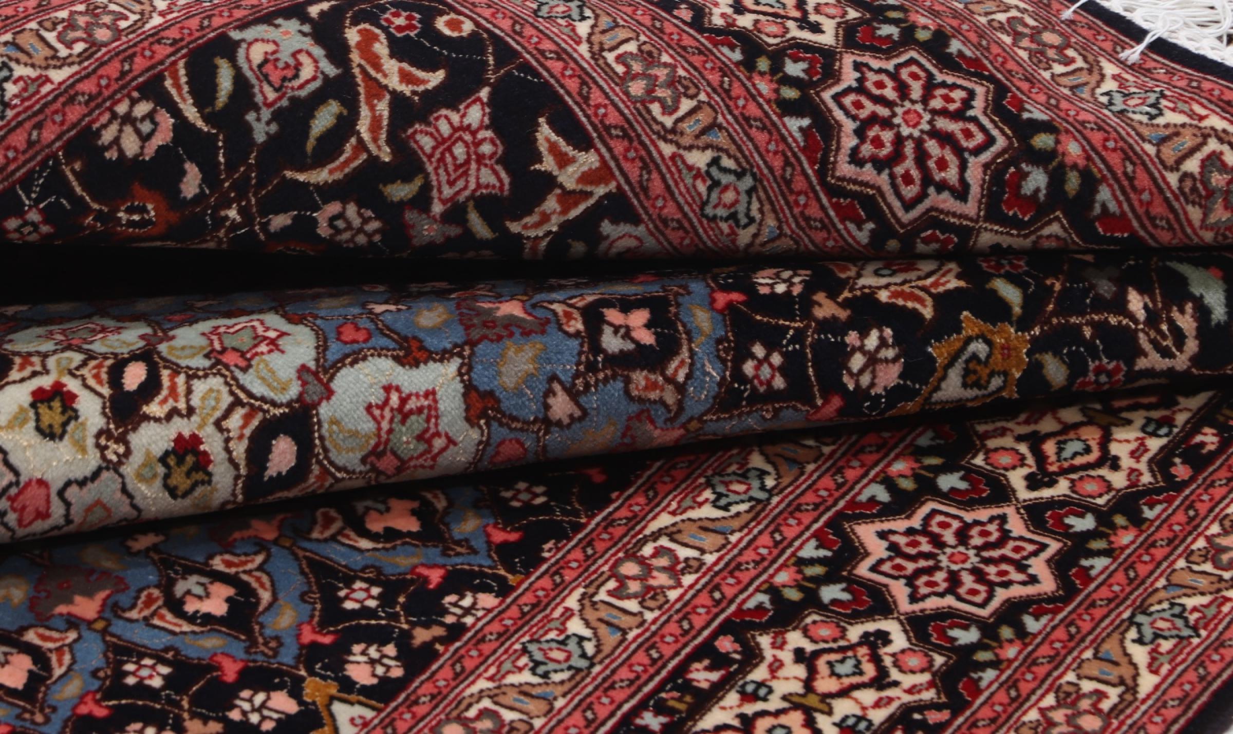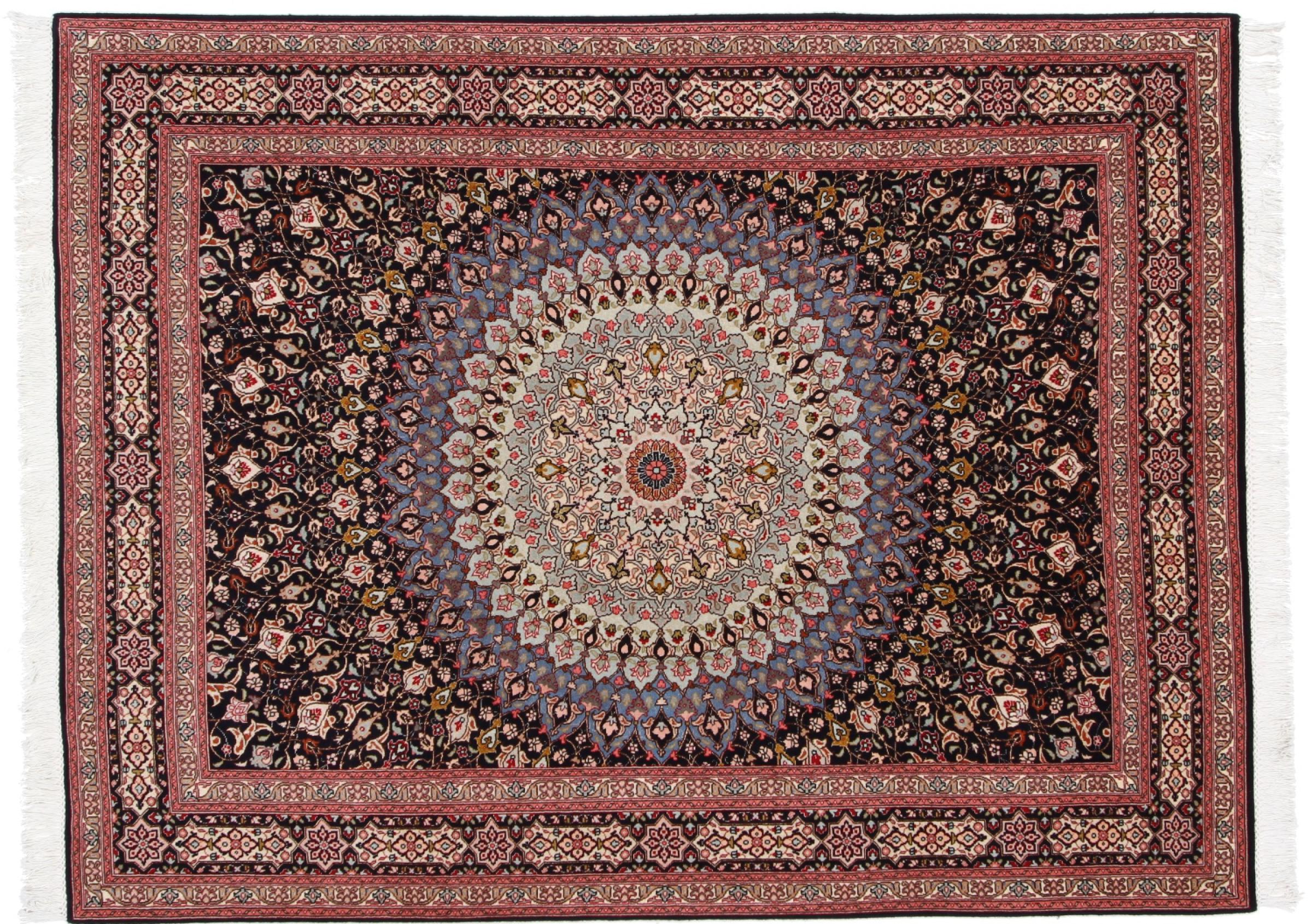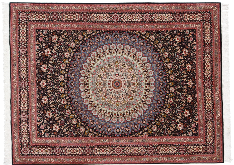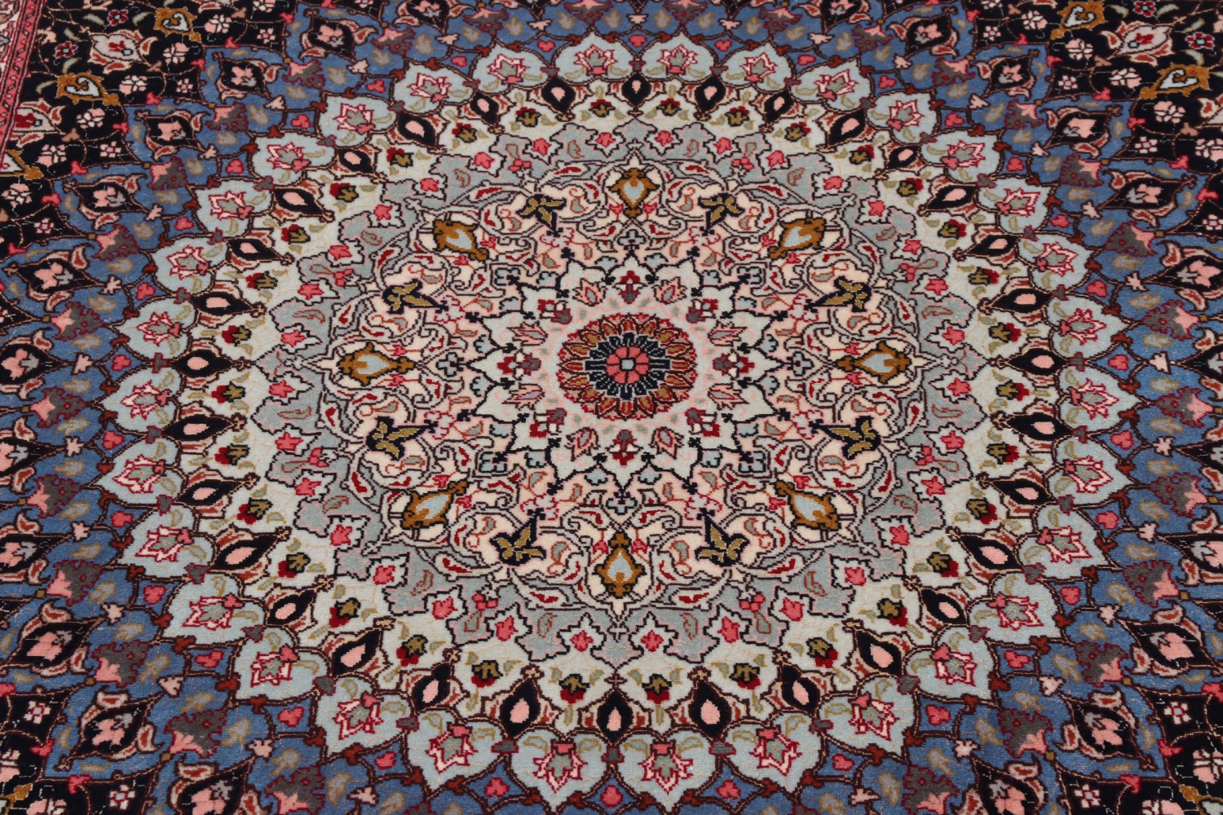 Rug ID: 35197009018826 Size: 6'9"x5'2" ft Thickness: ap. 0.28 in Knot density: 320 - 355 / square inch Manufacturing: Knotted by hand Pile: Wool with silk Warp: Cotton Origin: Persia / Iran Age: New Weight: ap. 22 lb Also know as Tabris, Tabriz, Tebris, Tebriz, Gumbad In stock: Unique - Only 1 in stock