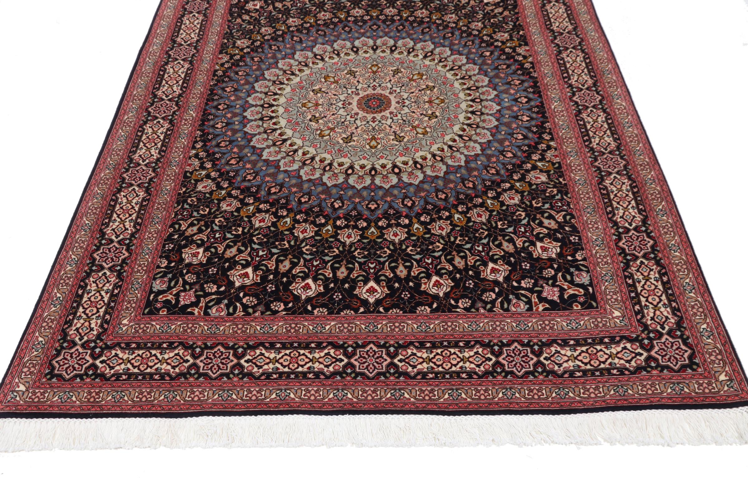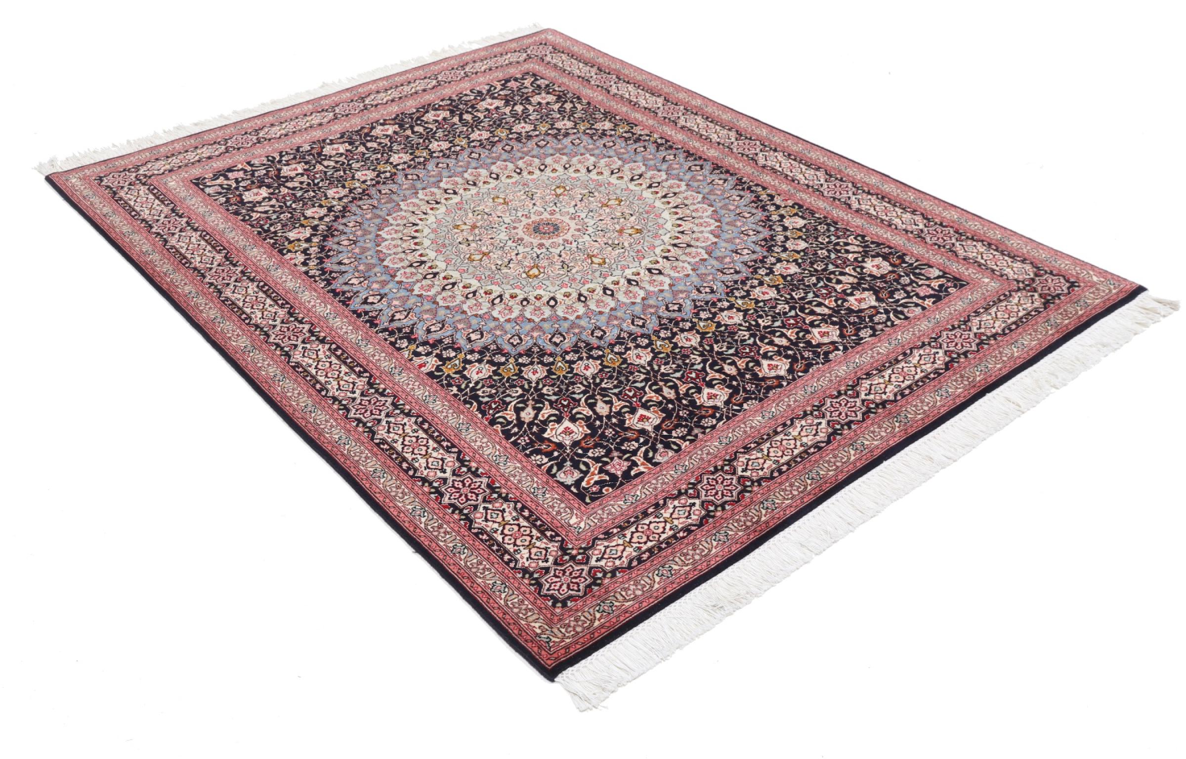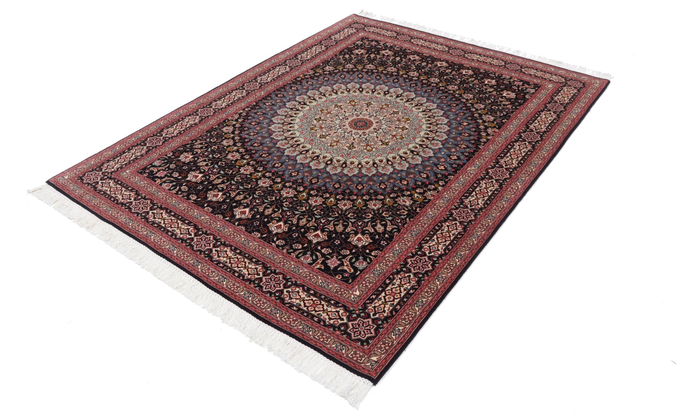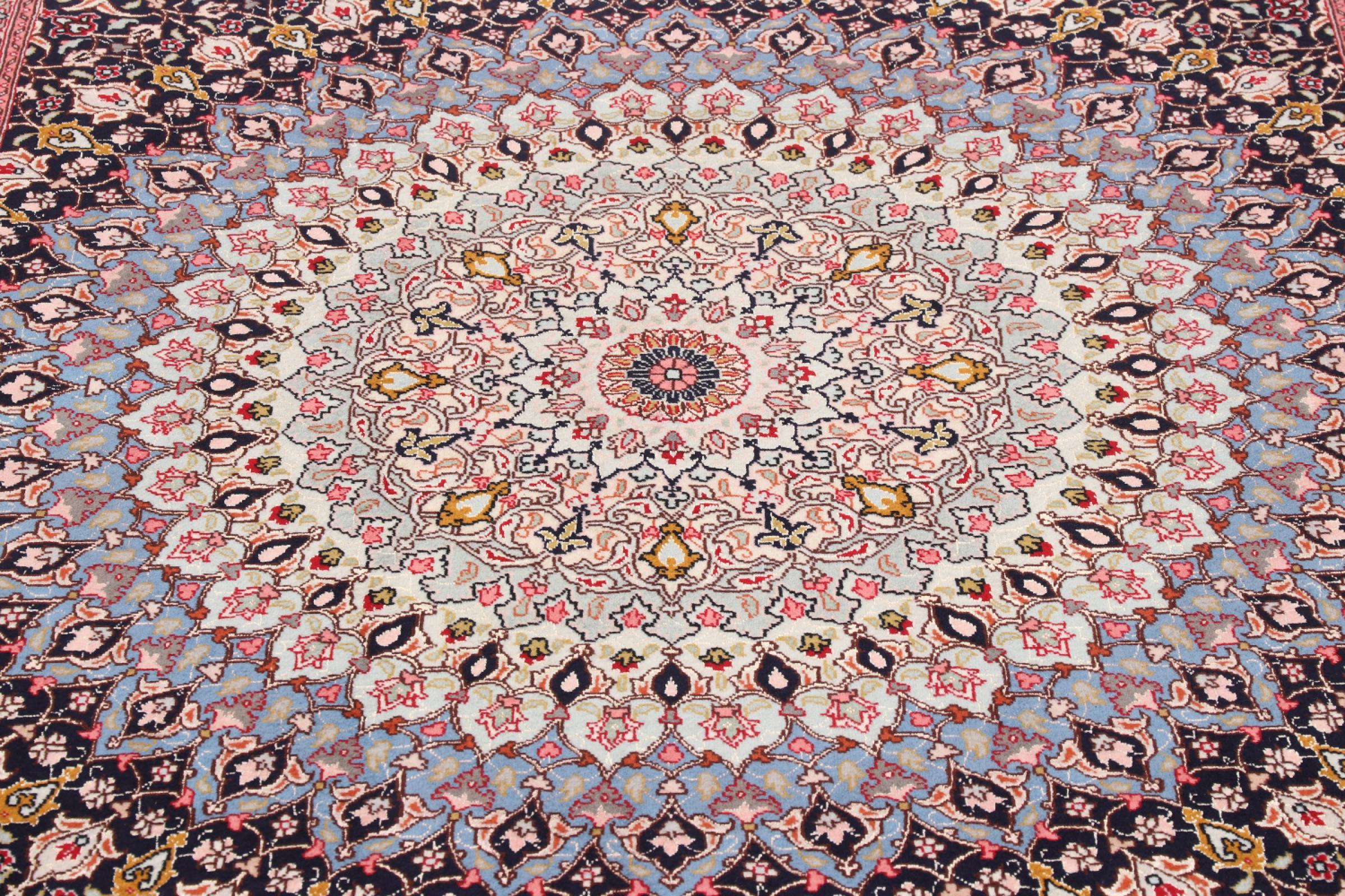 Rug ID: 35197009018826 Size: 6'9"x5'2" ft Thickness: ap. 0.28 in Knot density: 320 - 355 / square inch Manufacturing: Knotted by hand Pile: Wool with silk Warp: Cotton Origin: Persia / Iran Age: New Weight: ap. 22 lb Also know as Tabris, Tabriz, Tebris, Tebriz, Gumbad In stock: Unique - Only 1 in stock