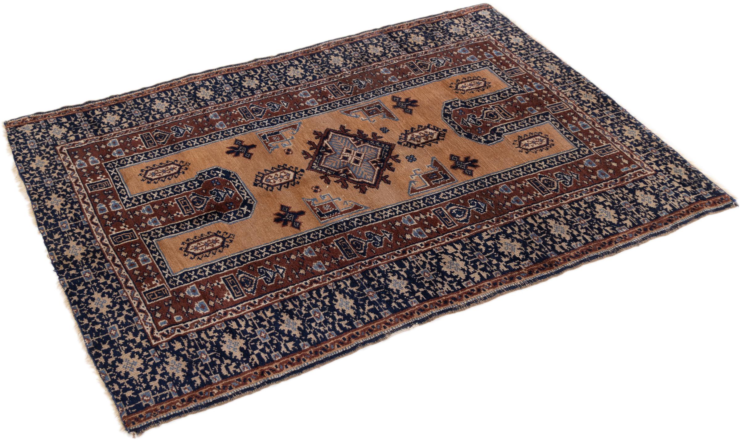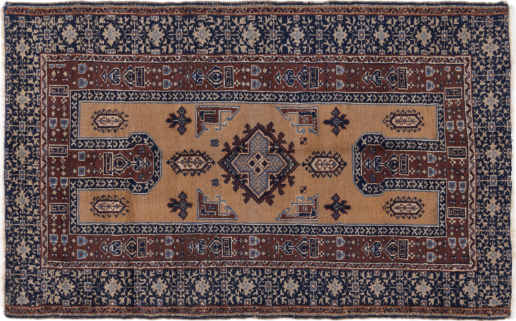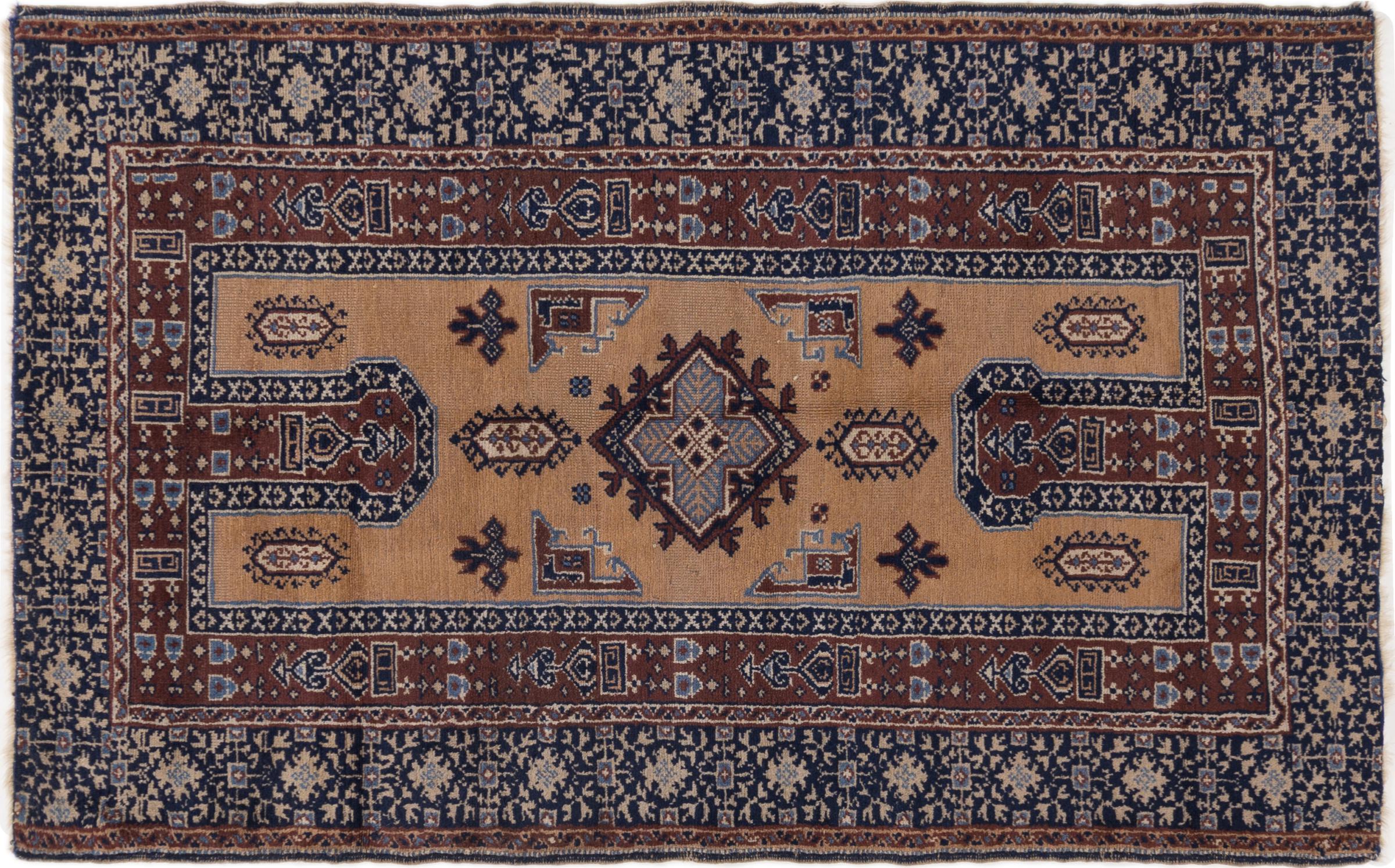 Rug ID: 298966005982 Size: 6'7"x4'1" ft Thickness: ap. 0.2 in Knot density: 209 - 232 / square inch Manufacturing: Knotted by hand Pile: Handspun wool Warp: Sheep wool Origin: Persia / Iran Age: Old/Semi antique, over 50 years Weight: ap. 20 lb In stock: Unique - Only 1 in stock