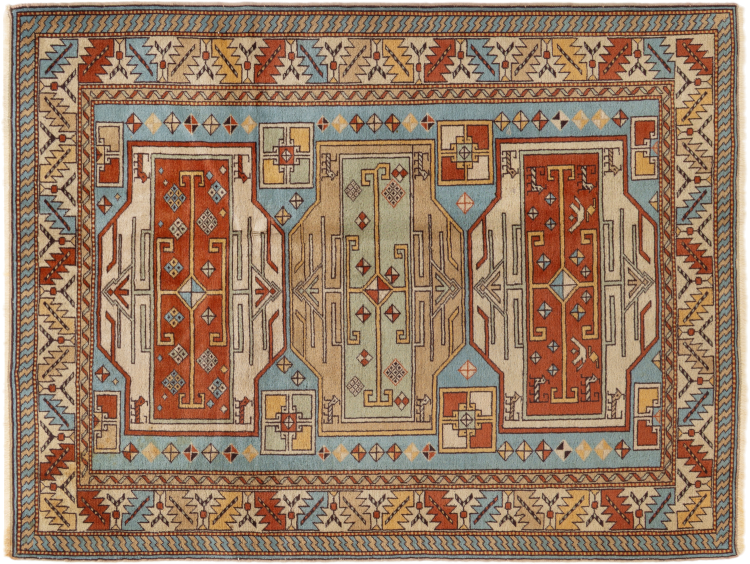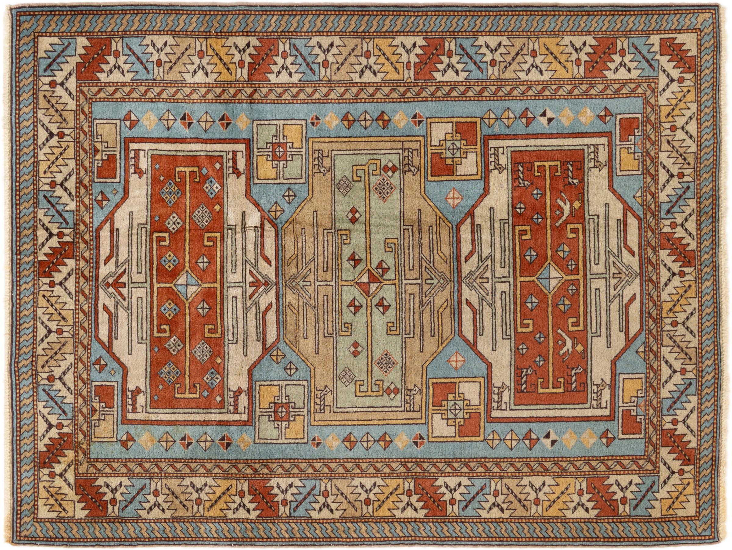 Rug ID: 295486005814 Size: 5'9"x4'4" ft Thickness: ap. 0.2 in Knot density: 82 - 103 / square inch Manufacturing: Knotted by hand Pile: Handspun wool Warp: Sheep wool Origin: Turkey Age: Old/Semi antique, over 50 years Weight: ap. 18 lb In stock: Unique - Only 1 in stock