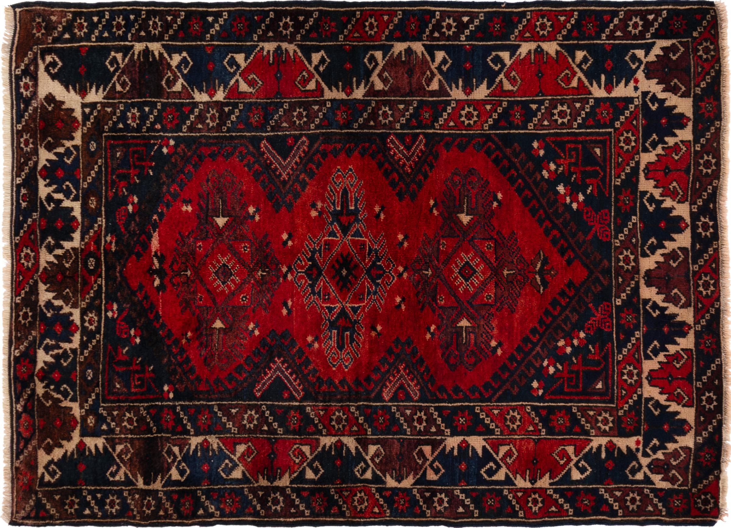 Rug ID: 3071560010340 Size: 5'11"x4'4" ft Thickness: ap. 0.2 in Knot density: 46 - 58 / square inch Manufacturing: Knotted by hand Pile: Handspun wool Warp: Cotton Condition / Conservation: Perfect Origin: Turkey Age: Antique, over 80 years Weight: ap. 18 lb In stock: Unique - Only 1 in stock