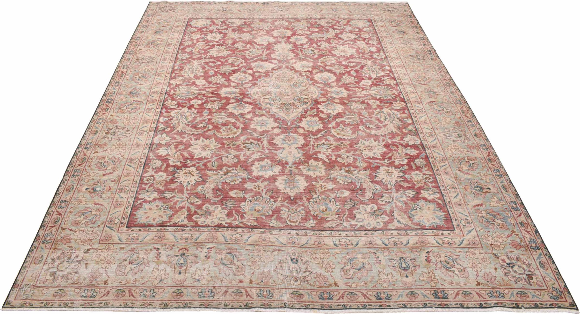These vintage rugs are old hand-knotted Oriental rugs, mostly Persian rugs. Such a rug can last a lifetime. Typically, the rugs are decolorized and the wool pile is reduced to a uniform level. This gives the rug a consistent appearance and a timeless vintage style. Only high-quality, undamaged hand-knotted rugs are made into vintage rugs.