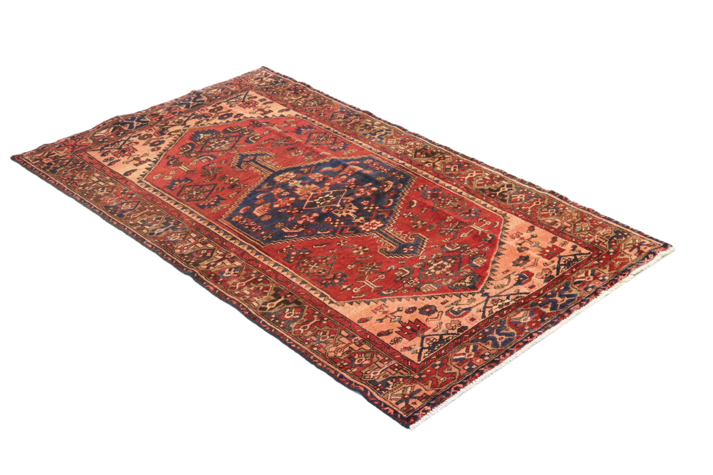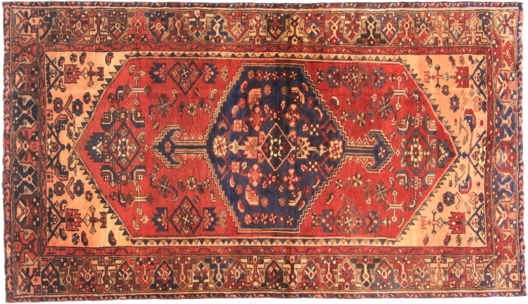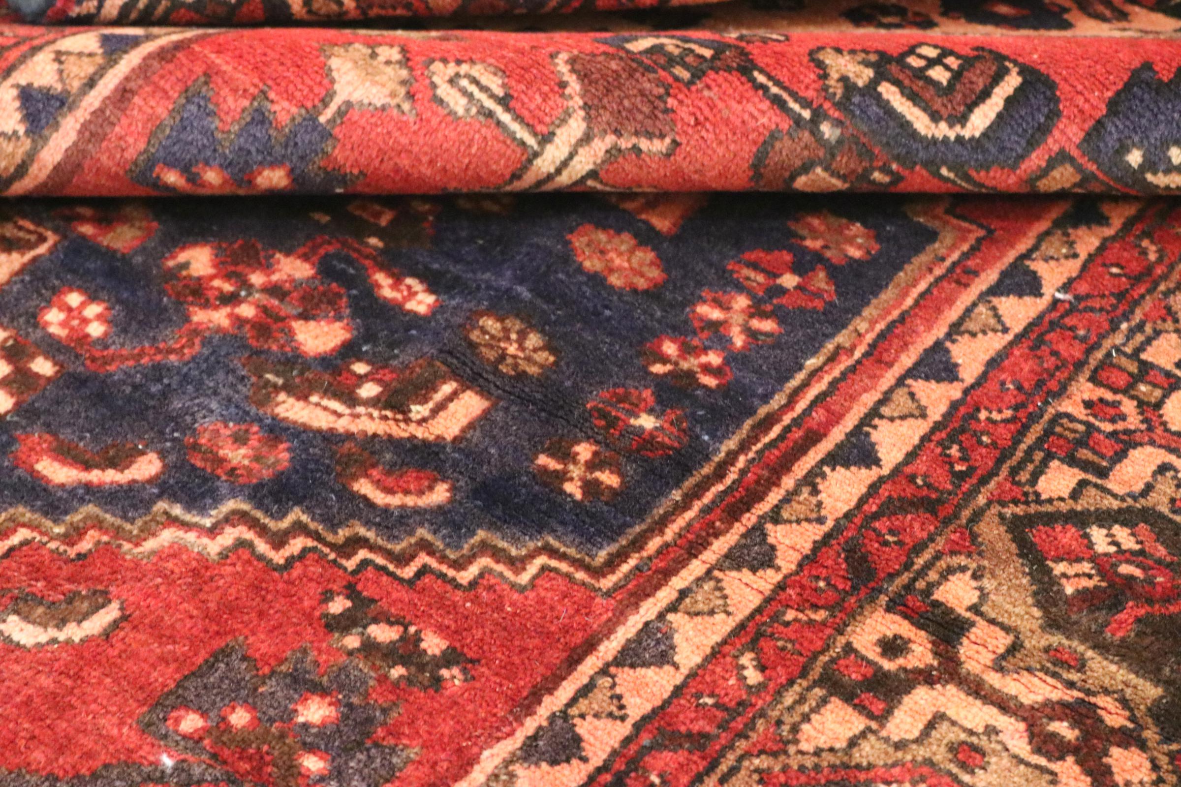 This carpet belongs to the village and nomadic carpets from Iran, the former Persia. This kind of carpets is hand knotted in smaller towns and villages in ancient tradition. Even nomads still knot Persian carpets in the open air. The carpets are knotted without a draft and entirely from memory. They are characterized by classical ornaments arranged in linear and geometric patterns. Thanks to their cultural and traditional origins, these rugs possess a unique character that embodies ancient Persia.