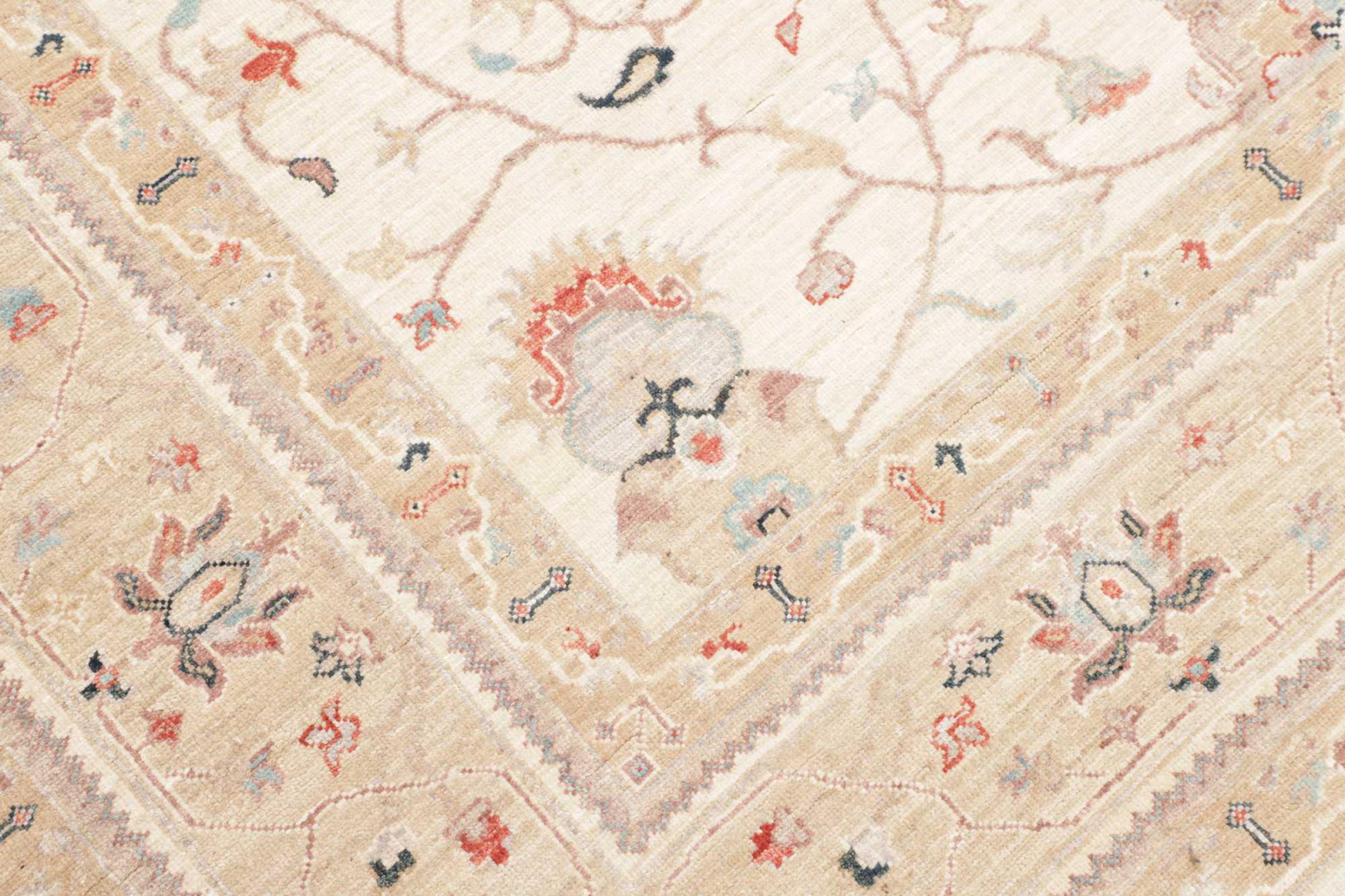 This Ziegler rug is handmade from sheep wool in Pakistan. It is held in a typical Persian design and is knotted in old tradition. Ziegler Farahan rugs are treated with a specific washing so as to achieve a beautiful faded color effect. The design of Ziegler rugs is highly popular today.