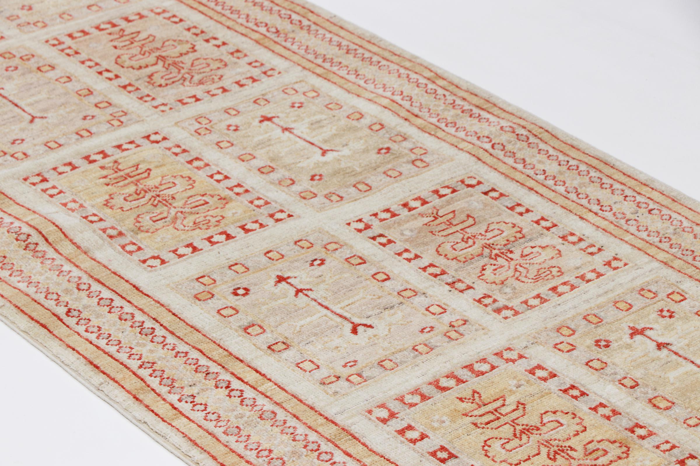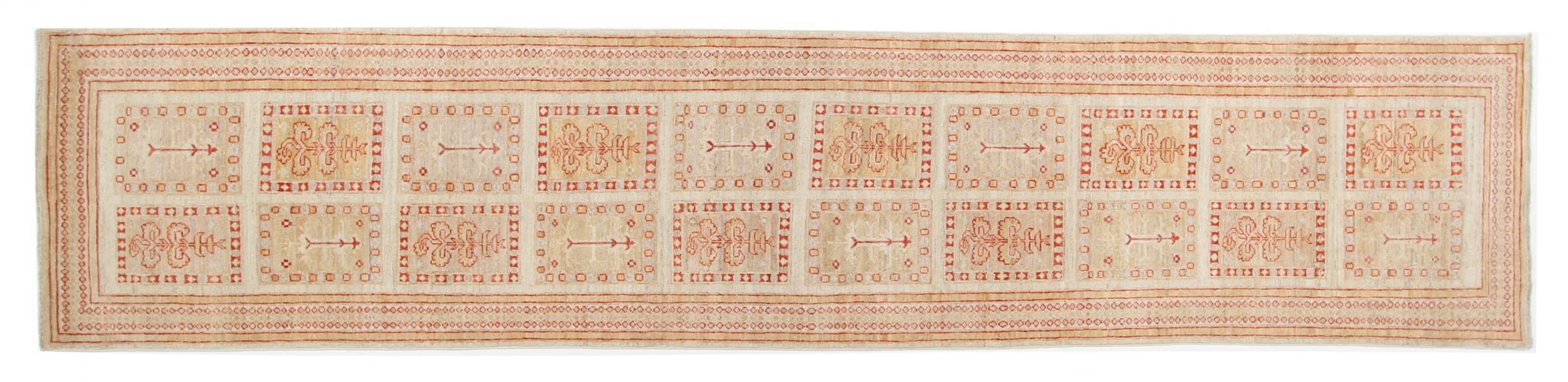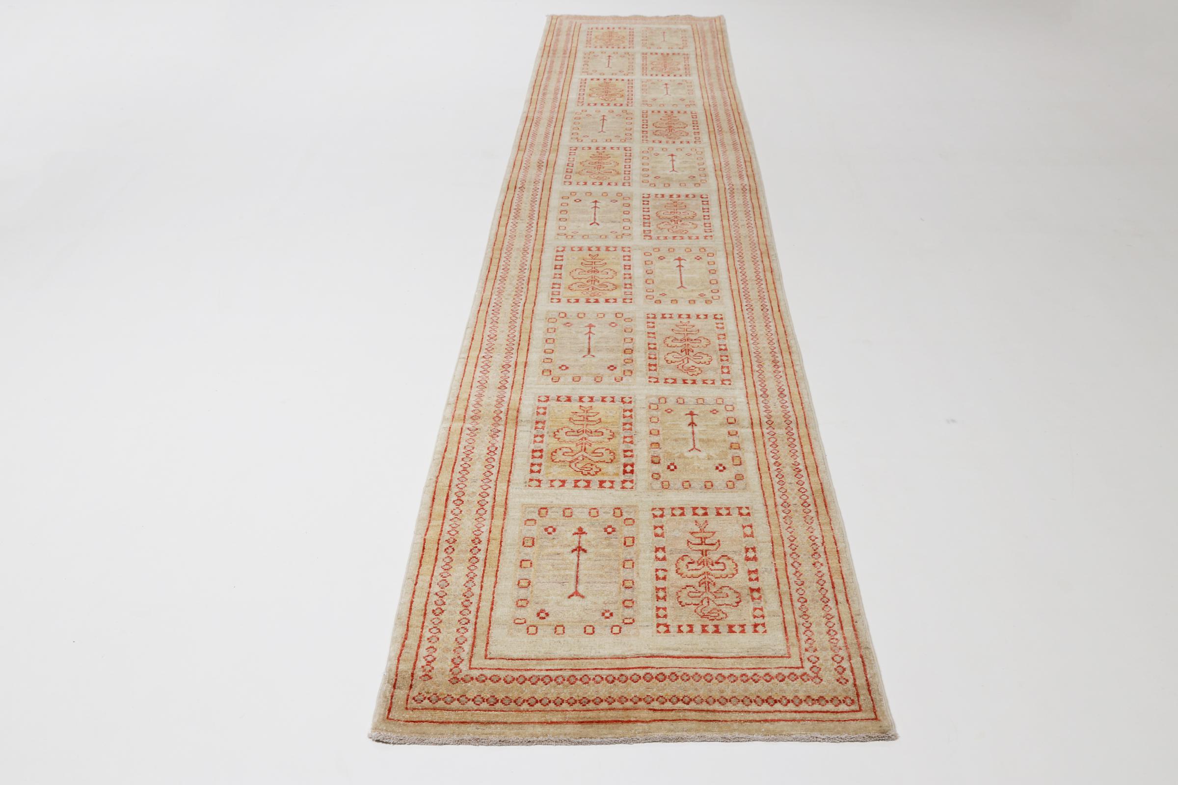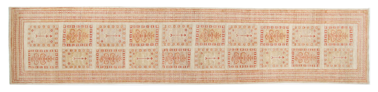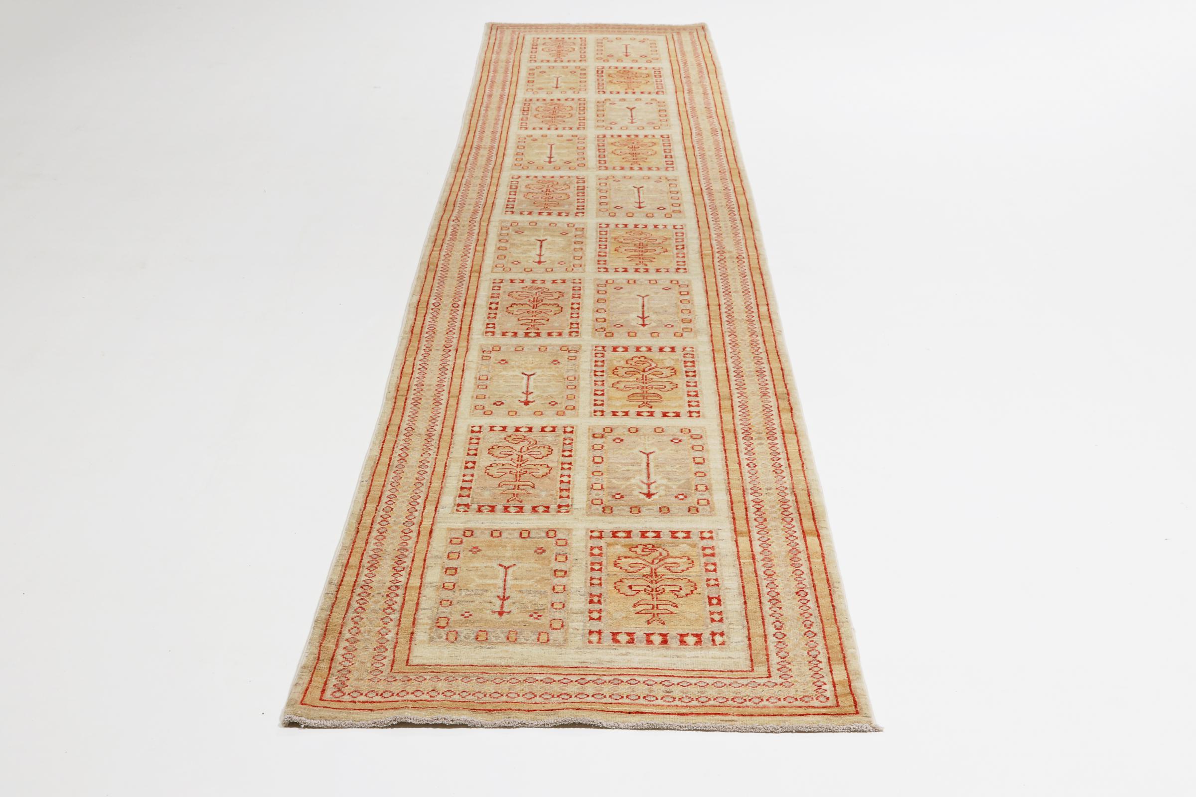 Rug ID: 37067002230865 Size: 12'6"x2'7" ft Thickness: ap. 0.24 in Knot density: 103 - 129 / square inch Manufacturing: Knotted by hand Pile: Sheep wool Warp: Cotton Origin: Pakistan Age: New Weight: ap. 24 lb In stock: Unique - Only 1 in stock