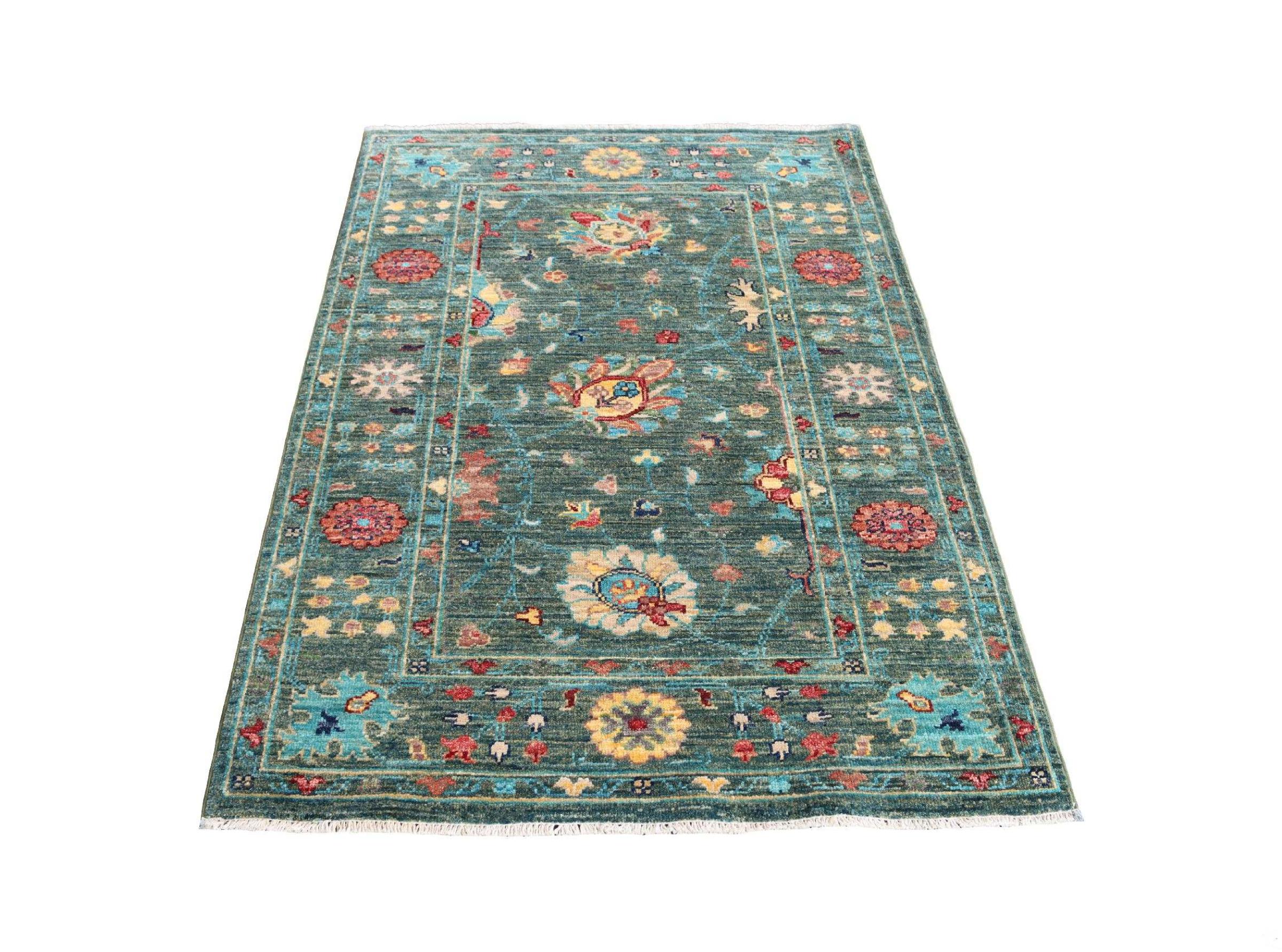 Rug ID: 300071006123540 Size: 3'10"x2'7" ft Thickness: ap. 0.2 in Knot density: 82 - 103 / square inch Manufacturing: Knotted by hand Pile: Handspun wool Warp: Cotton Origin: Pakistan Age: New Weight: ap. 7 lb In stock: Unique - Only 1 in stock